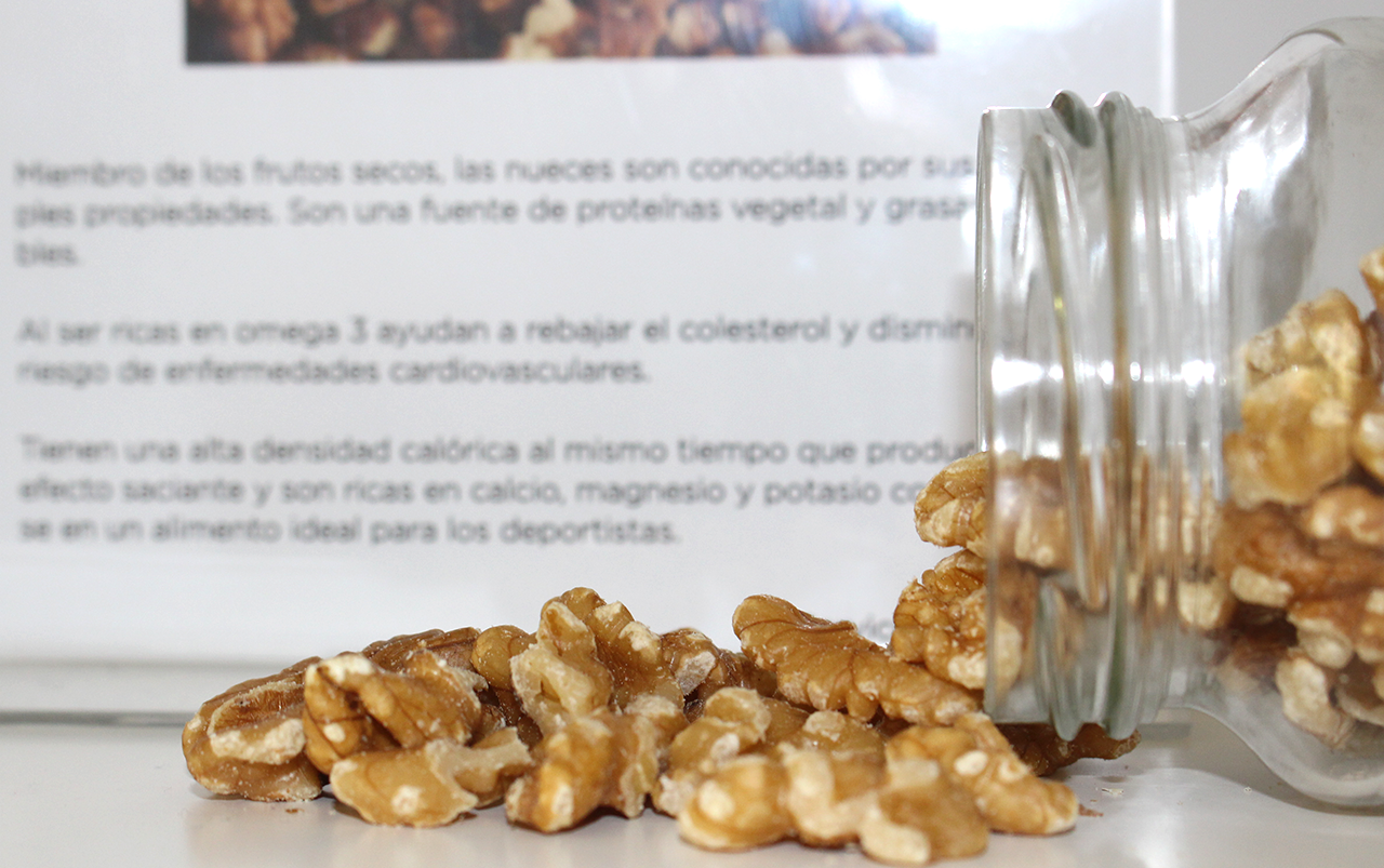 Las nueces son una fuente de proteínas de orígen vegetal y grasas saludables. Al ser ricas en omega 3 ayudan a rebajar el colesterol y disminuyen el riesgo de enfermedades cardiovasculares.