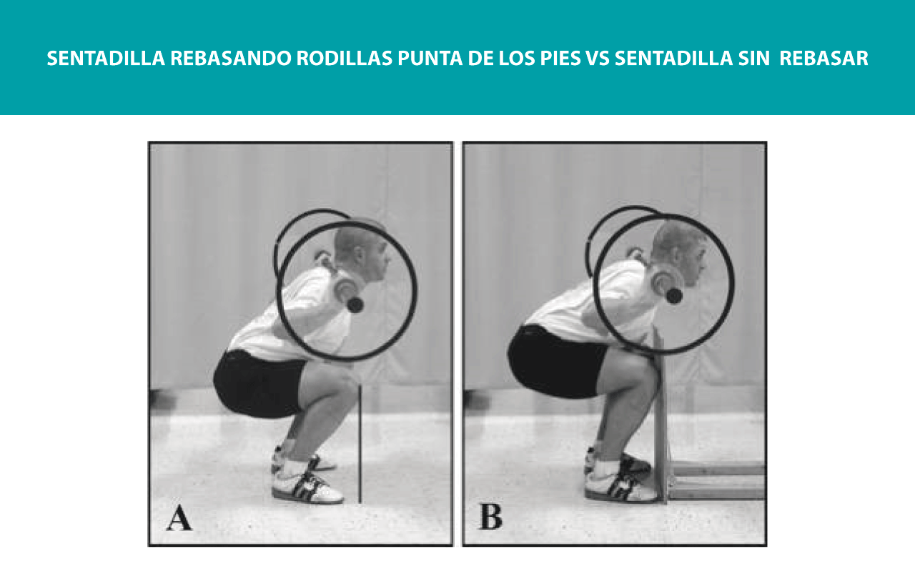 Frecuentemente escuchamos en los gimnasios y centros de entrenamiento que en la sentadilla las rodillas no deben rebasar la punta de los pies.